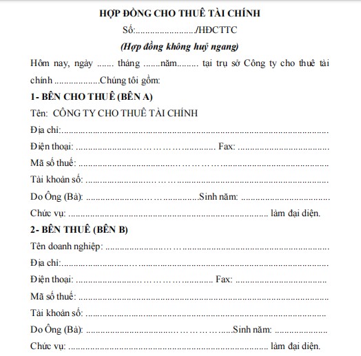 HỢP ĐỒNG CHO THUÊ TÀI CHÍNH