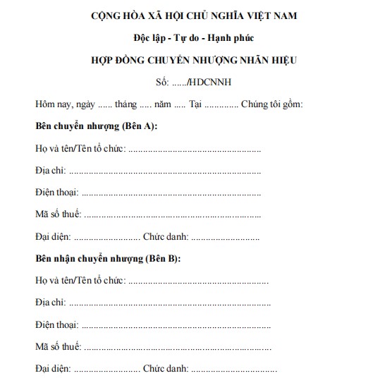 HỢP ĐỒNG CHUYỂN NHƯỢNG NHÃN HIỆU