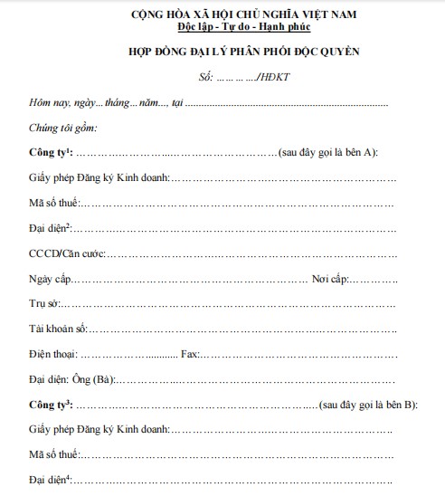 Hợp đồng đại lý phân phối độc quyền Mẫu hợp đồng phân phối độc quyền theo quy định pháp luật