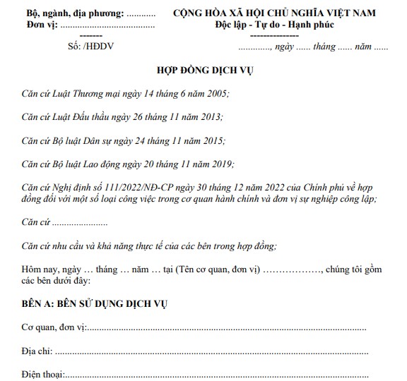 Mẫu hợp đồng dịch vụ Hợp đồng dịch vụ trong cơ quan hành chính công lập