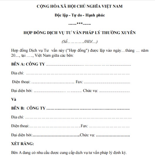 HỢP ĐỒNG DỊCH VỤ TƯ VẤN PHÁP LÝ THƯỜNG XUYÊN