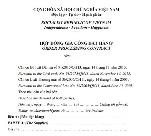 HỢP ĐỒNG GIA CÔNG ĐẶT HÀNG