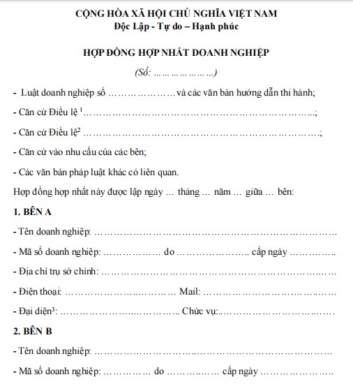 HỢP ĐỒNG HỢP NHẤT DOANH NGHIỆP