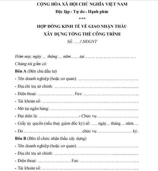 HỢP ĐỒNG KINH TẾ VỀ GIAO NHẬN THẦU
