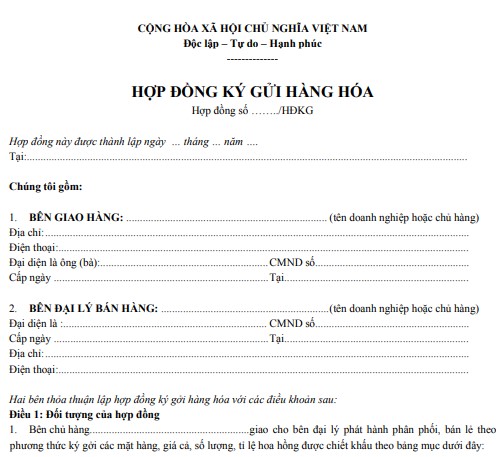 Hợp đồng giúp hai bên xây dựng cơ sở pháp lý rõ ràng, minh bạch, ghi nhận đầy đủ quyền lợi, nghĩa vụ, trách nhiệm cũng như phương thức thanh toán và xử lý rủi ro trong quá trình ký gửi hàng hóa. Khi sử dụng mẫu hợp đồng chuẩn, doanh nghiệp hoặc cá nhân gửi hàng có thể yên tâm hơn trong việc giao hàng hóa cho đơn vị trung gian phân phối, còn bên nhận ký gửi sẽ có cơ sở chính xác để quản lý, phân phối và thanh toán đúng cam kết. Nội dung hợp đồng thường bao gồm thông tin các bên tham gia, mô tả hàng hóa ký gửi, thời hạn hợp đồng, mức phí, điều khoản bảo mật, quyền chấm dứt và giải quyết tranh chấp. Đây là biểu mẫu cần thiết, hỗ trợ quá trình giao dịch hàng hóa diễn ra thuận lợi, hạn chế rủi ro, đảm bảo quyền lợi pháp lý và kết quả kinh doanh hiệu quả, mời các bạn cùng tham khảo.