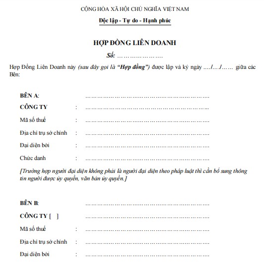 Mẫu hợp đồng liên doanh mới nhất được xây dựng dựa trên quy định pháp luật hiện hành, thể hiện rõ quyền, nghĩa vụ, tỷ lệ góp vốn, cơ cấu quản lý, phương thức phân chia lợi nhuận, xử lý rủi ro và chấm dứt hợp đồng giữa các bên. Việc tham khảo và sử dụng đúng mẫu hợp đồng giúp các chủ thể hạn chế rủi ro pháp lý, đảm bảo tính minh bạch và bảo vệ lợi ích hợp pháp của các bên tham gia. Mẫu hợp đồng liên doanh mới nhất vì vậy có ý nghĩa quan trọng trong việc hỗ trợ tổ chức, cá nhân ký kết hợp tác, tạo nền tảng pháp lý vững chắc cho hoạt động kinh doanh và phát triển lâu dài, mời các bạn cùng tham khảo.