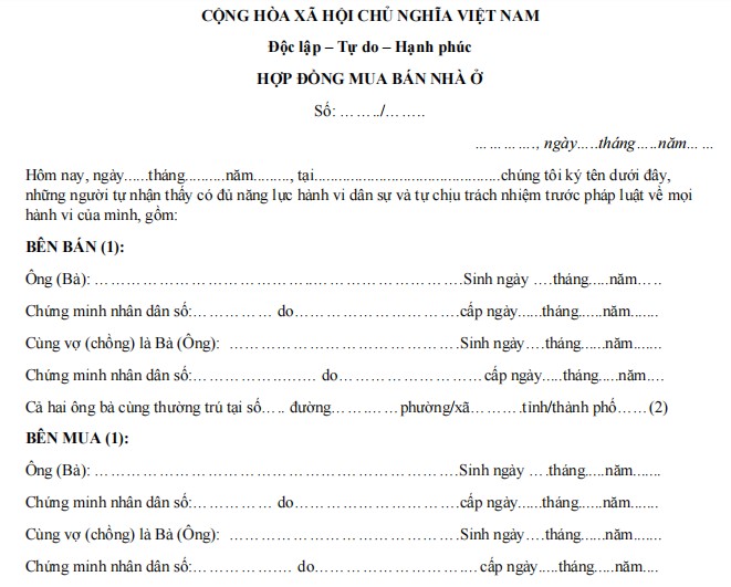HỢP ĐỒNG MUA BÁN NHÀ Ở