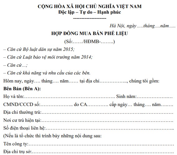 HỢP ĐỒNG MUA BÁN PHẾ LIỆU