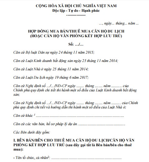 HỢP ĐỒNG MUA BÁN/THUÊ MUA CĂN HỘ DU LỊCH