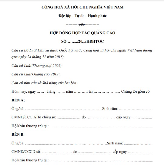 HỢP ĐỒNG HỢP TÁC QUẢNG CÁO