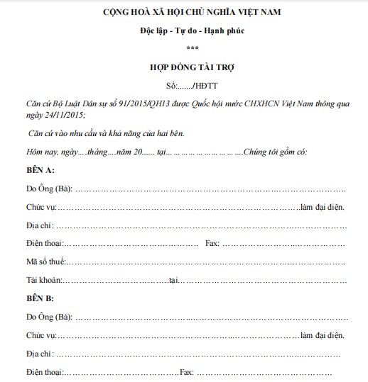 HỢP ĐỒNG TÀI TRỢ