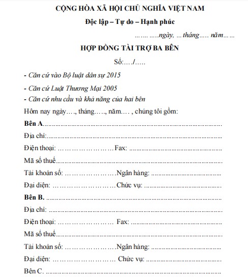 HỢP ĐỒNG TÀI TRỢ BA BÊN