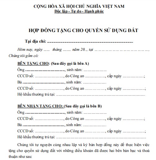 Hợp đồng tặng cho quyền sử dụng đất Mẫu hợp đồng tặng cho quyền sử dụng đất mới nhất 2025