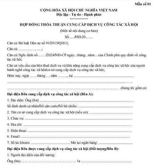HỢP ĐỒNG THỎA THUẬN CUNG CẤP DỊCH VỤ CÔNG TÁC XÃ HỘI