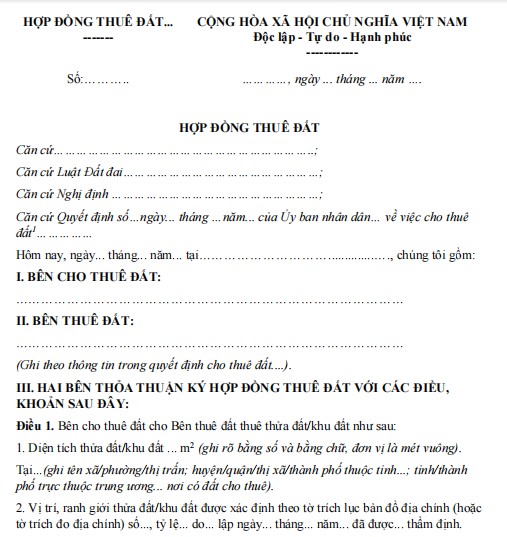 HỢP ĐỒNG THUÊ ĐẤT