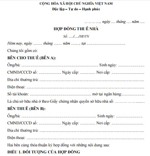 HỢP ĐỒNG THUÊ NHÀ