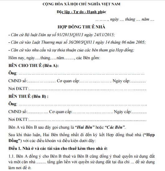 HỢP ĐỒNG THUÊ NHÀ Ở NGUYÊN CĂN