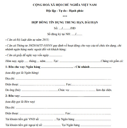 HỢP ĐỒNG TÍN DỤNG TRUNG HẠN, DÀI HẠN