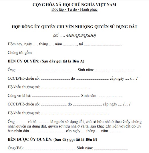 HỢP ĐỒNG ỦY QUYỀN CHUYỂN NHƯỢNG QUYỀN SỬ DỤNG ĐẤT
