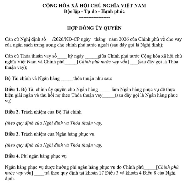 MẪU HỢP ĐỒNG ỦY QUYỀN GIỮA BỘ TÀI CHÍNH VÀ NGÂN HÀNG PHỤC VỤ
