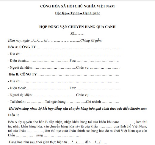 HỢP ĐỒNG VẬN CHUYỂN HÀNG QUÁ CẢNH