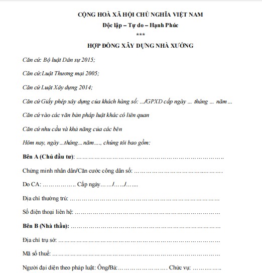 HỢP ĐỒNG XÂY DỰNG NHÀ XƯỞNG