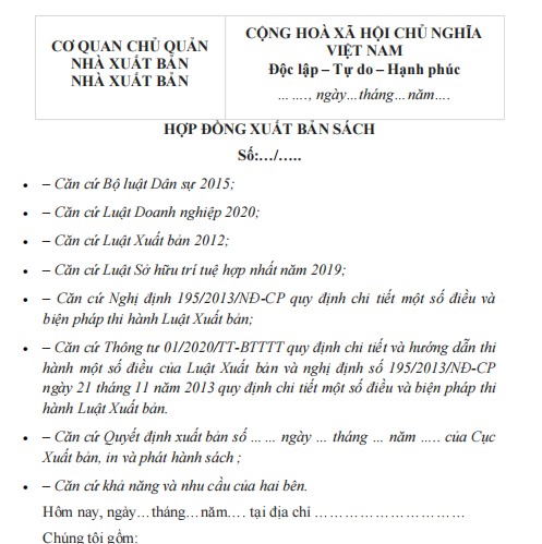 HỢP ĐỒNG XUẤT BẢN SÁCH