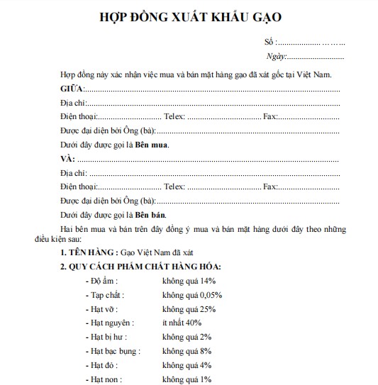 HỢP ĐỒNG XUẤT KHẨU GẠO