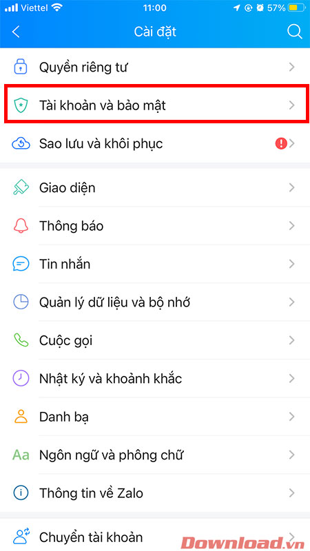 Ở màn hình Cài đặt hiện ra, các bạn nhấn chọn vào phần Tài khoản và bảo mật.