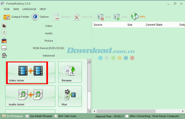 Tìm hiểu thêm » Hỗ trợ qua ZaloỞ những bài viết trước, Download.vn đã hướng dẫn bạn thực hiện cách chuyển đổi video, thay đổi ngôn ngữ giao diện và tạo nhạc chuông bằng Format Factory rất dễ dàng. Tuần này, chúng tôi xin tiếp tục giới thiệu cách nối video nhanh chóng cũng bằng cách sử dụng phần mềm convert video này. Các bạn hãy cùng tham khảo nhé!