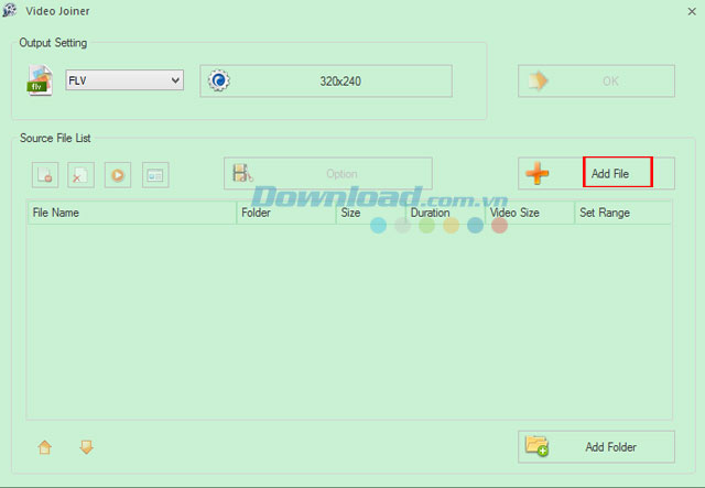 Tiếp thep, nhấn chuột vào nút Add File để thêm video mà bạn muốn ghép nối với nhau.