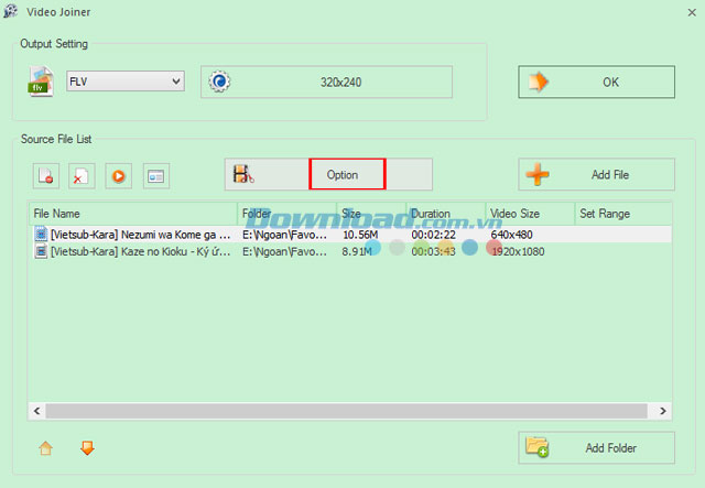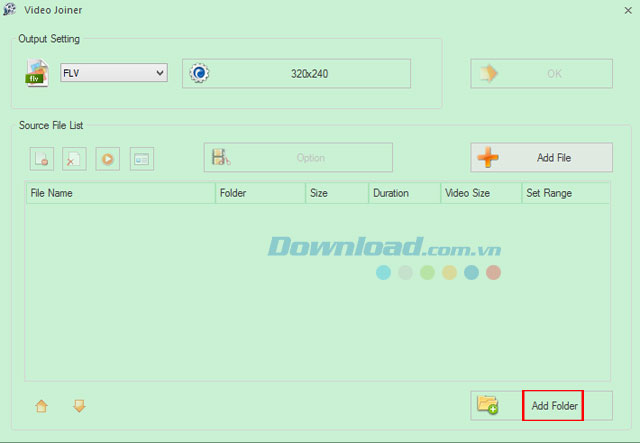 Nếu muốn thêm cả thư mục video để thực hiện ghép nối luôn, vui lòng nhấn nút Add Folder ở phía dưới cùng bên phải của cửa sổ.