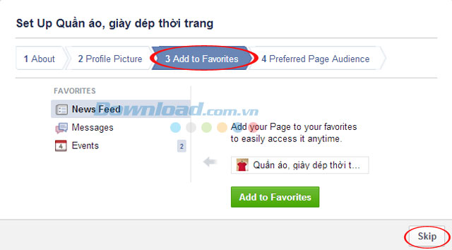 Ở đây, bạn có thể thêm trang của mình vào mục yêu thích để dễ dàng truy cập vào bất cứ thời điểm nào mình muốn. Sau đó, nhấn nút Add to Favorites. Hoặc, có thể bỏ qua nếu muốn khi nhấn Skip.