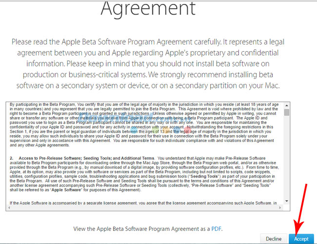 Tại màn hình là giao diện Agreement, nôm na là các điều khoản, nội quy mà hãng đưa ra cho người dùng, các bạn click vào Accept bên dưới cùng.