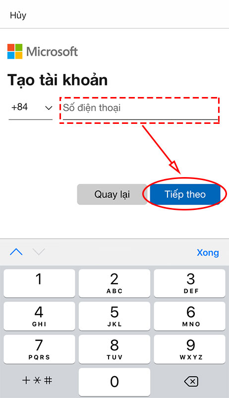 Nhập số điện thoại của bạn vào ô trống sau đó nhấn nút Tiếp theo.