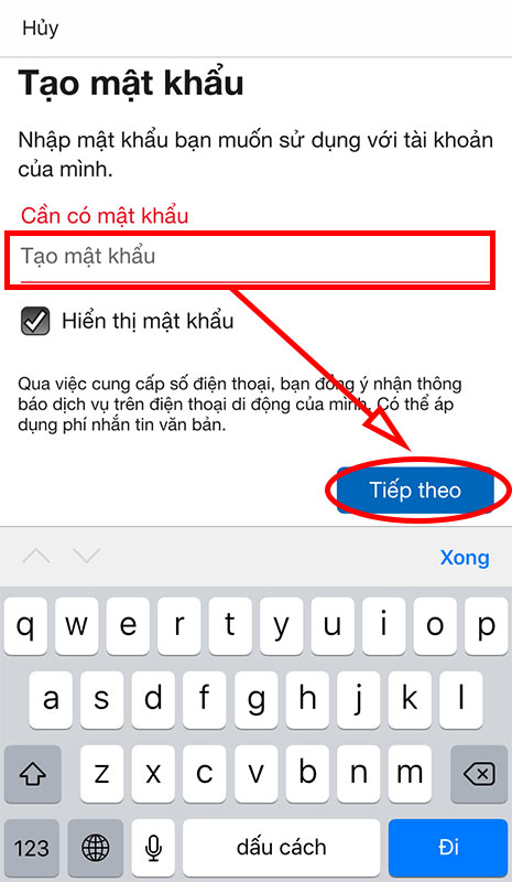 Tiếp tục tạo mật khẩu cho tài khoản, sau đó nhấn nút Tiếp theo.