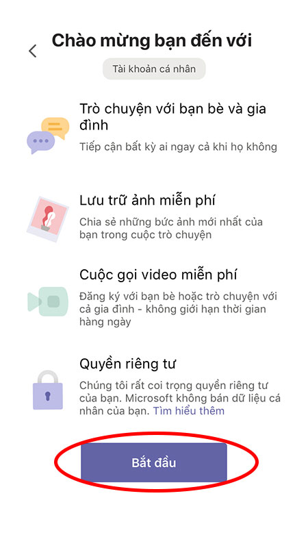 Nếu nhập đúng mã xác nhận, bạn sẽ được chuyển đến màn hình chào mừng. Nhấn nút Tiếp tục với tài khoản cá nhân.