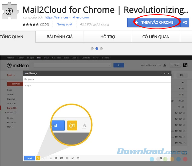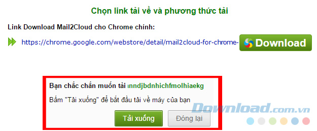 Bước 1: Đầu tiên, các bạn cần tải về tiện ích mở rộng này bằng cách truy cập vào địa chỉ ở trên. Giao diện mới hiện ra, các bạn nhấp vào ô Tải về / Tải xuống (làm tương tự như khi cài đặt Mail2Cloud cho Chrome).