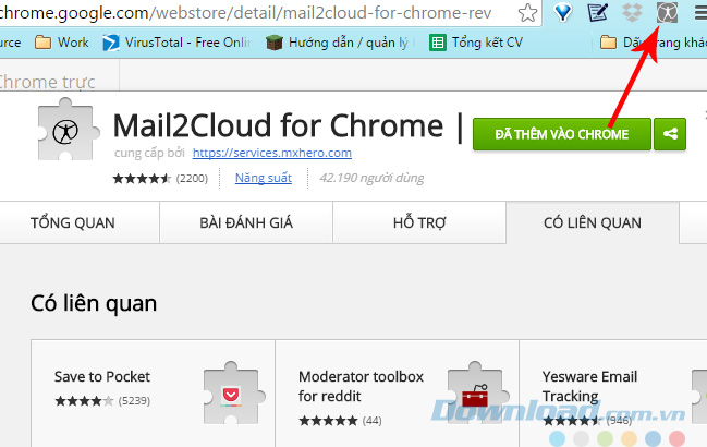 Cài đặt thành công Mail2Cloud cho trình duyệt Chrome