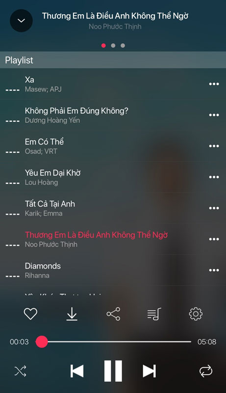 Nếu bạn muốn nghe các bài hát khác trong Playlist đã chọn, hãy nhấn vào nút Playlist như hình dưới.