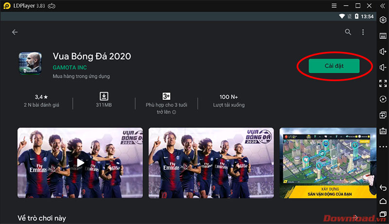 Tìm hiểu thêm »Vua bóng đá 2020 là một game quản lý bóng đá trên mobile do NPH Gamota phát hành độc quyền tại Việt Nam. Với đồ họa 3D đẹp mắt, âm thanh sống động với giọng bình luận của BTV Quang Huy thì Vua bóng đá hứa hẹn sẽ mang đến trải nghiệm cực kỳ thú vị cho những game thủ ưa thích bộ môn Esport này. Trong bài viết dưới đây, Download.vn sẽ hướng dẫn các bạn cách tải và cài đặt game trên PC bằng trình giả lập nhanh gọn và đơn giản.