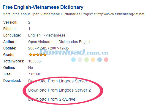 Rồi chọn một trong số những được link được cung cấp sẵn để tải từ điển Anh-Việt này về máy tính của mình.