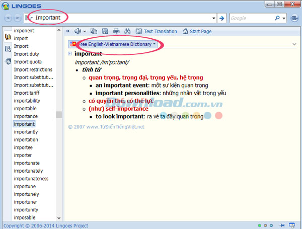 Như vậy, từ điển Free English-Vietnamese Dictionary đã được thêm vào danh mục các cuốn từ điển được cài đặt trong Lingoes.