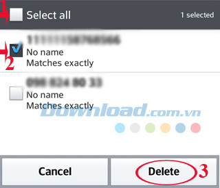 Bước 5: Nếu muốn xóa số điện thoại chặn nào đó trong danh sách chặn thì tại cửa sổ Reject calls from. Hãy tích vào ô Select all nếu muốn xóa toàn bộ danh sách, tích vào dấu tích chọn ở đầu mỗi số điện thoại, sau đó nhấn Delete để xóa riêng số điện thoại đó ra khỏi danh sách chặn.
