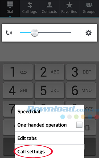 Bước 1: Trên màn hình chính nhấn vào mục Cuộc gọi. Cửa sổ quản lý cuộc gọi xuất hiện nhấn vào biểu tượng 3 gạch ngang ở góc dưới cùng bên phải màn hình. Sau đó chọn Call Settings để vào phần cài đặt cuộc gọi.