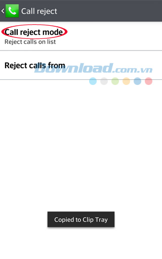 Bước 3: Tại cửa sổ Call reject mode sẽ cho bạn 3 sự lựa chọn: