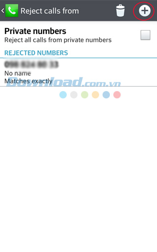 Tùy vào mục đích sử dụng của mỗi người mà chọn chế độ cho phù hợp. Ở đây, chúng ta sẽ chọn chế độ Reject calls on list. Còn nếu muốn thêm số khác vào danh sách từ chối cuộc gọi thì tại mục Reject calls from nhấn vào biểu tượng dấu cộng ở góc trên cùng bên phải màn hình.