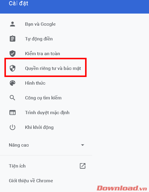 Trong phần cài đặt, tiếp tục chọn Quyền riêng tư và bảo mật ở menu bên trái.