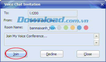 Bước 4: Cửa sổ Voice Chat Invitation xuất hiện bên Yahoo của người được mời chat, sau khi họ nhấn Join sẽ được kết nối tới phòng chat mà bạn tạo.