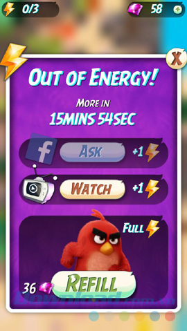 Tuy nhiên, như vừa nói, ở mỗi màn thử thách, gamer sẽ có số lượt chơi nhất định. Nếu đã sử dụng tất cả mà vẫn chưa thể hoàn thành thử thách (số lượng tia sét ở góc trên cùng, bên trái về 0) thì sẽ phải tạm dừng một khoảng thời gian nhất định trước khi có thể quay trở lại chơi tiếp.